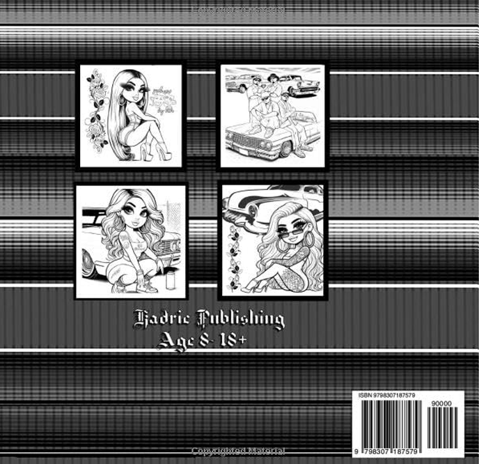 "Chibi-Cholas Coloring Book" features 40 unique designs that capture the vibrant essence of Chicano style. Each page has bold, easy-to-color illustrations, perfect for beginners and experienced colorists. The large, easy-print format makes it accessible for ages 13 years to adults, allowing users to fill in detailed characters inspired by city culture. Designed as a stress-relief coloring book, "Chibi-Cholas" invites you to relax and unwind while bringing the energy of Lowriders to life with your creative touch.